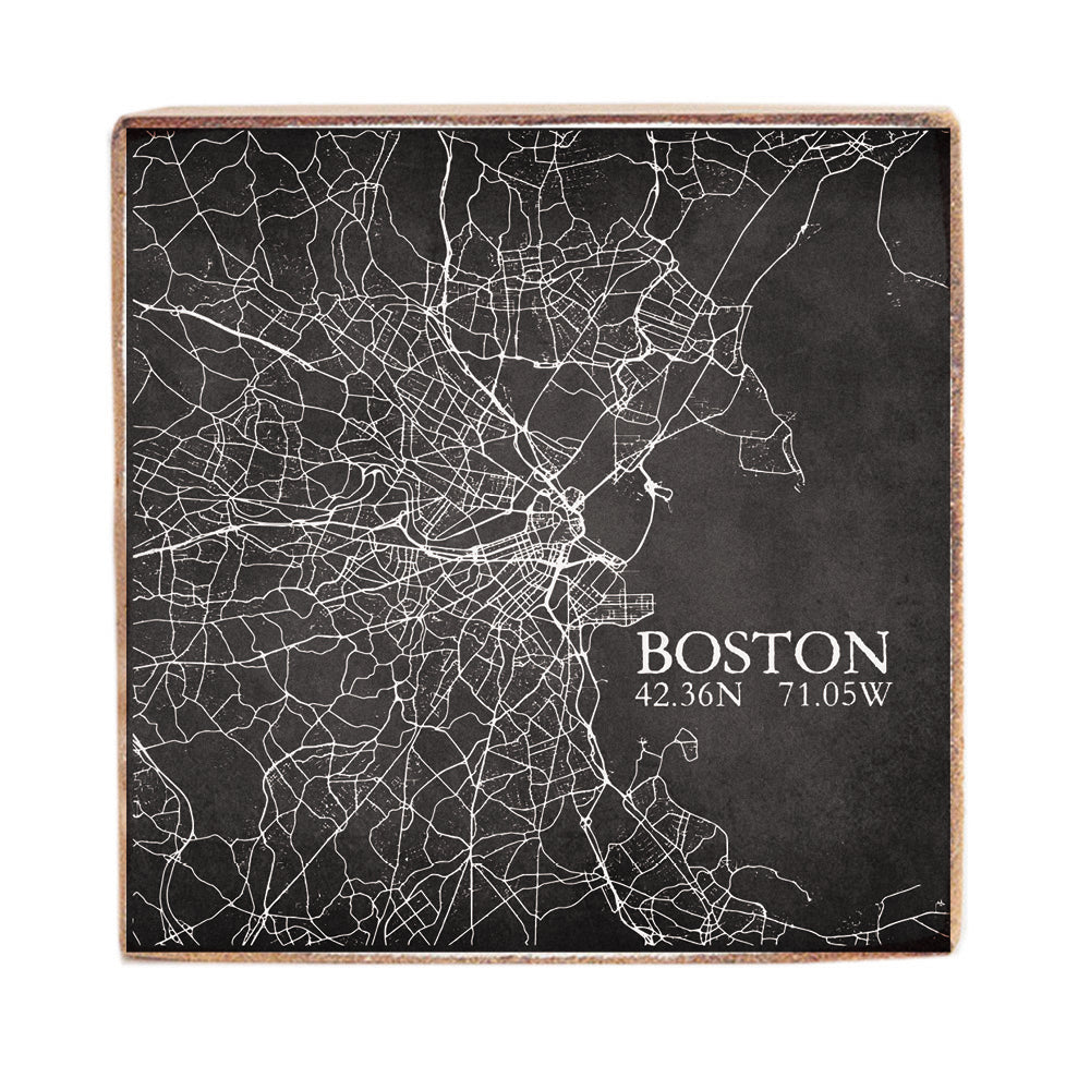 Crafted from high-quality wood, this piece features a detailed map of Boston in striking white lines against a charcoal background. The coordinates add a personal touch, making it a thoughtful gift for city lovers. Easy to hang or display on a shelf, this twine sign is both versatile and stylish. Enhance your decor with this Boston map art, perfect for those who appreciate cityscape decor and modern design.