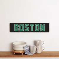 Elevate your home decor with this personalized Boston twine sign, perfect for adding a touch of charm to any space. Its unique design makes it an ideal gift for Boston enthusiasts or a stylish addition to your own collection. The sign's bold green and black lettering stands out, creating a striking focal point that captures attention and sparks conversation.