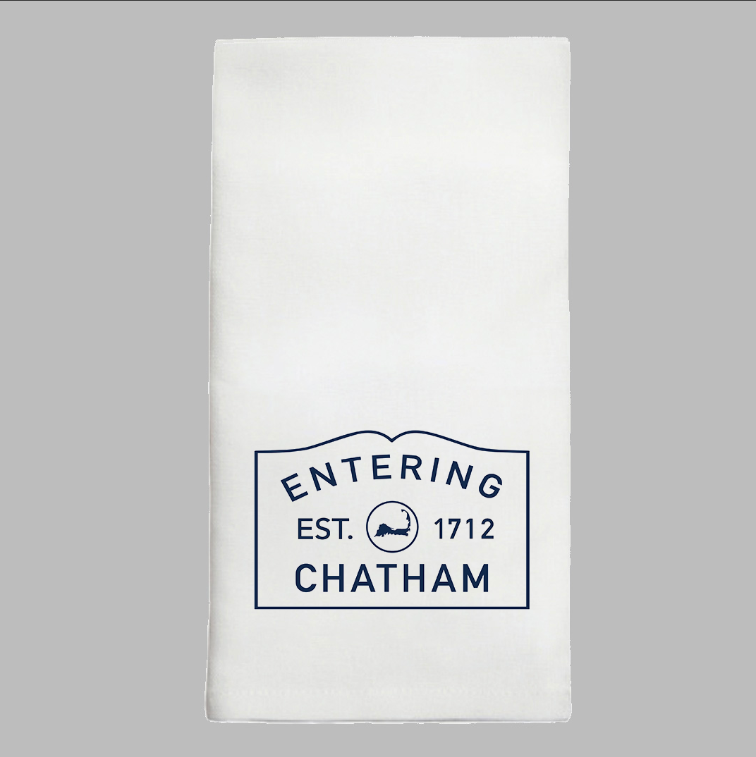 Crafted from high-quality cotton, this tea towel is soft, absorbent, and durable, ensuring it withstands daily use. The crisp white fabric is complemented by a navy print, featuring the iconic "Entering Chatham" design. Measuring a generous size, it’s perfect for various kitchen tasks. This tea towel also makes a thoughtful gift for Cape Cod enthusiasts or anyone who appreciates coastal living. Add a piece of Cape Cod to your home today.