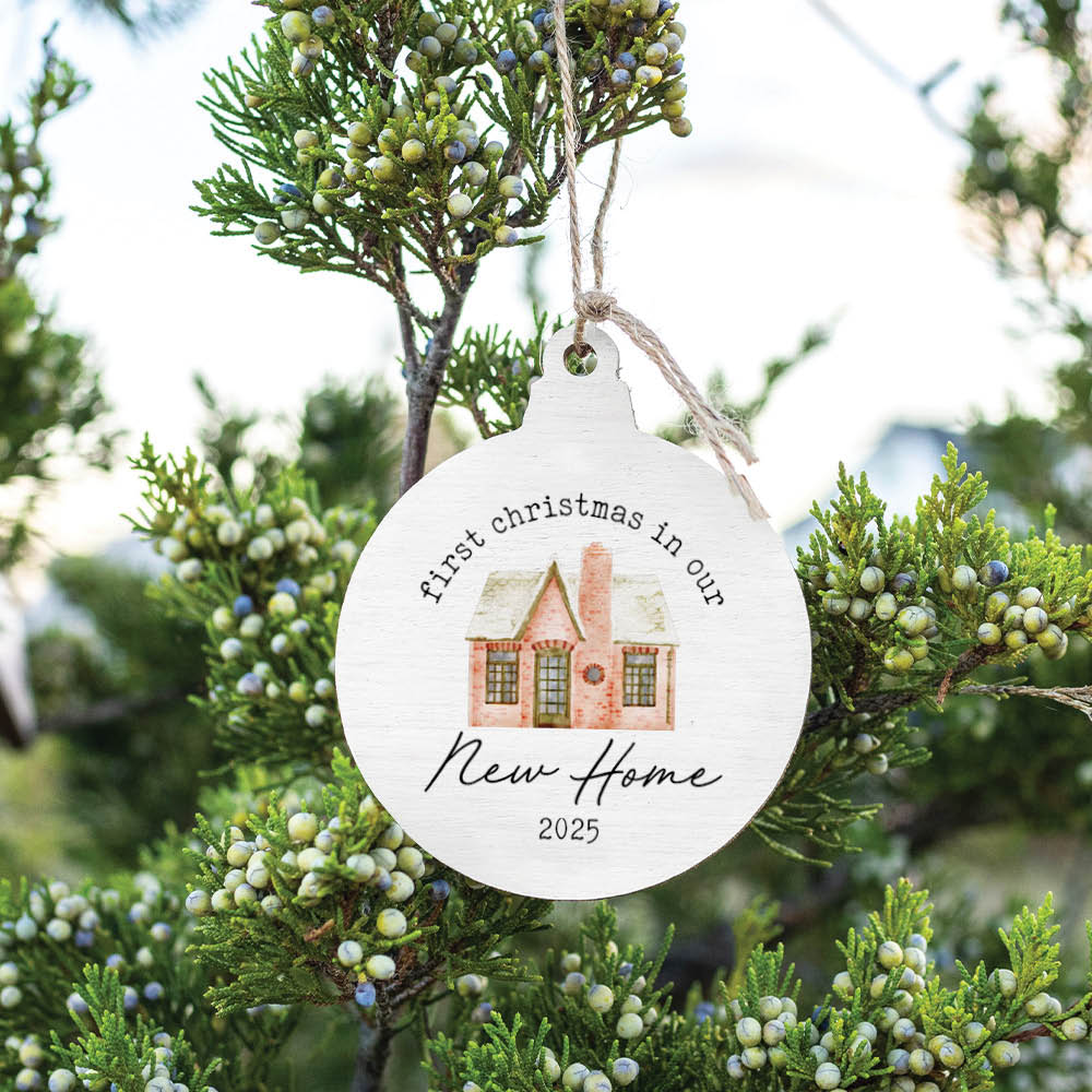 Crafted from high-quality wood, this ornament features a beautifully illustrated house and the heartfelt message, "First Christmas in Our New Home 2025." The durable twine loop ensures easy hanging, while the lightweight construction makes it suitable for any branch. Ideal for holiday decorations, housewarming gifts, or keepsakes, this ornament is a versatile addition to your seasonal collection. Embrace the spirit of the season and make lasting memories with this delightful piece.