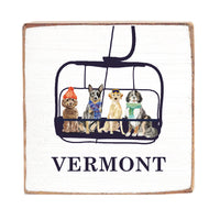 Dogs Ski Lift Personalized Square Block Sign