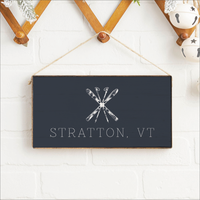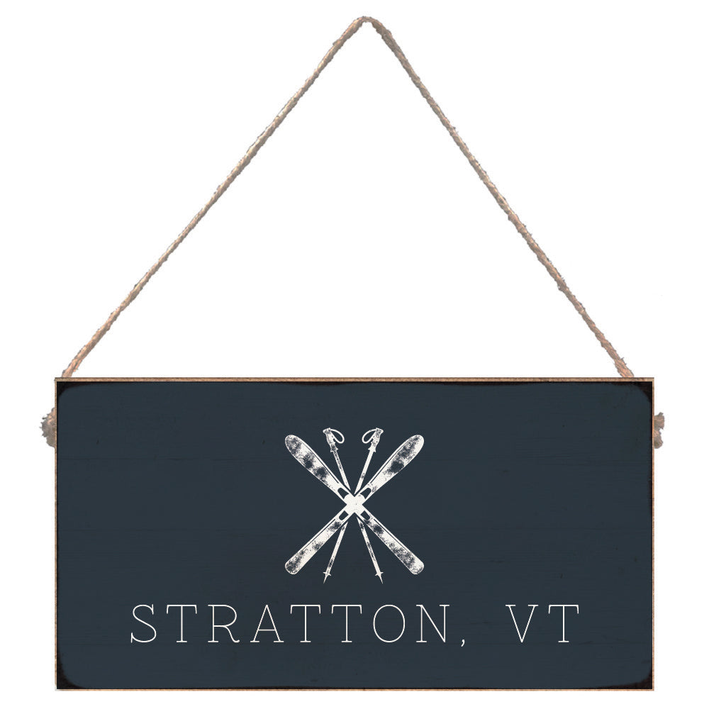 Crafted with care, this twine sign features a durable wooden base and a classic navy blue finish. The crossed skis design and customizable text offer a nod to your favorite winter getaway. Easy to hang with its sturdy twine, this sign is both stylish and functional. Whether you're decorating a ski lodge or bringing a bit of the mountains to your home, this personalized twine sign is a versatile and thoughtful choice.