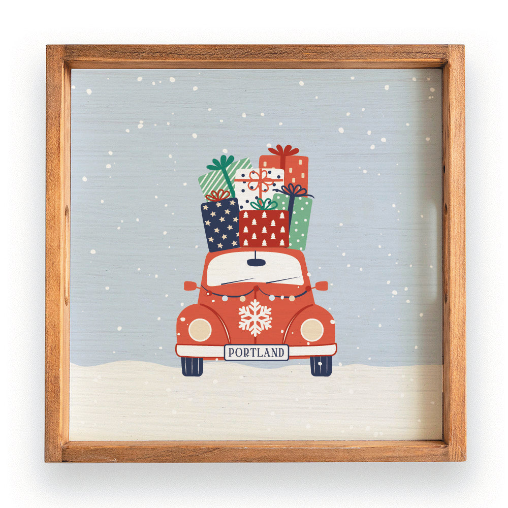 Elevate your holiday gatherings with the Holiday Haul Personalized Serving Tray, a charming addition that brings festive cheer to your home. Perfect for serving snacks or drinks, this tray adds a personal touch to your celebrations, making it a delightful conversation starter. The twine sign design features a vintage car loaded with colorful gifts, evoking a sense of nostalgia and warmth. Personalize it with your chosen location to create a unique piece that reflects your holiday spirit.