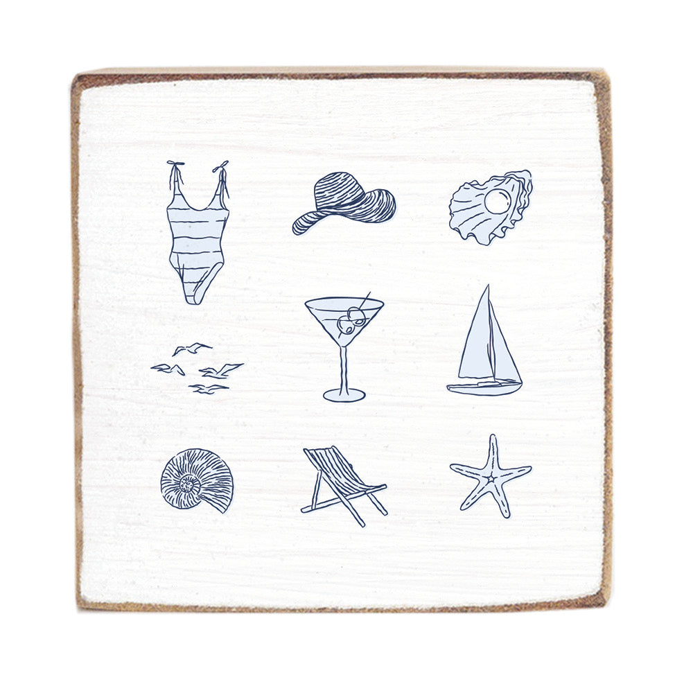 Crafted with care, this square block features a collection of iconic coastal symbols, including a sailboat, starfish, and seashell. The minimalist blue illustrations on a whitewashed background offer a clean, modern aesthetic that complements various interior styles. Measuring conveniently for easy placement, this twine sign is a delightful way to infuse your space with a beachy vibe. Ideal for gifting, it’s a thoughtful choice for anyone who cherishes the sea.