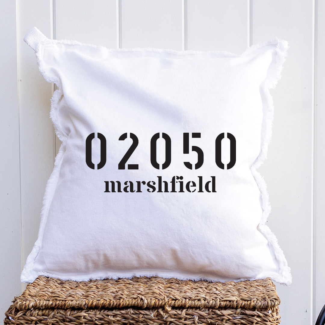 Crafted with high-quality materials, this square pillow features a bold, easy-to-read font that highlights your chosen zip code and subtitle. The durable construction ensures long-lasting use, while the removable cover allows for easy cleaning. Pair it with our twine sign collection to create a cohesive look that celebrates your favorite locations. Ideal for housewarming gifts, birthdays, or just because, this pillow is a meaningful addition to any home.