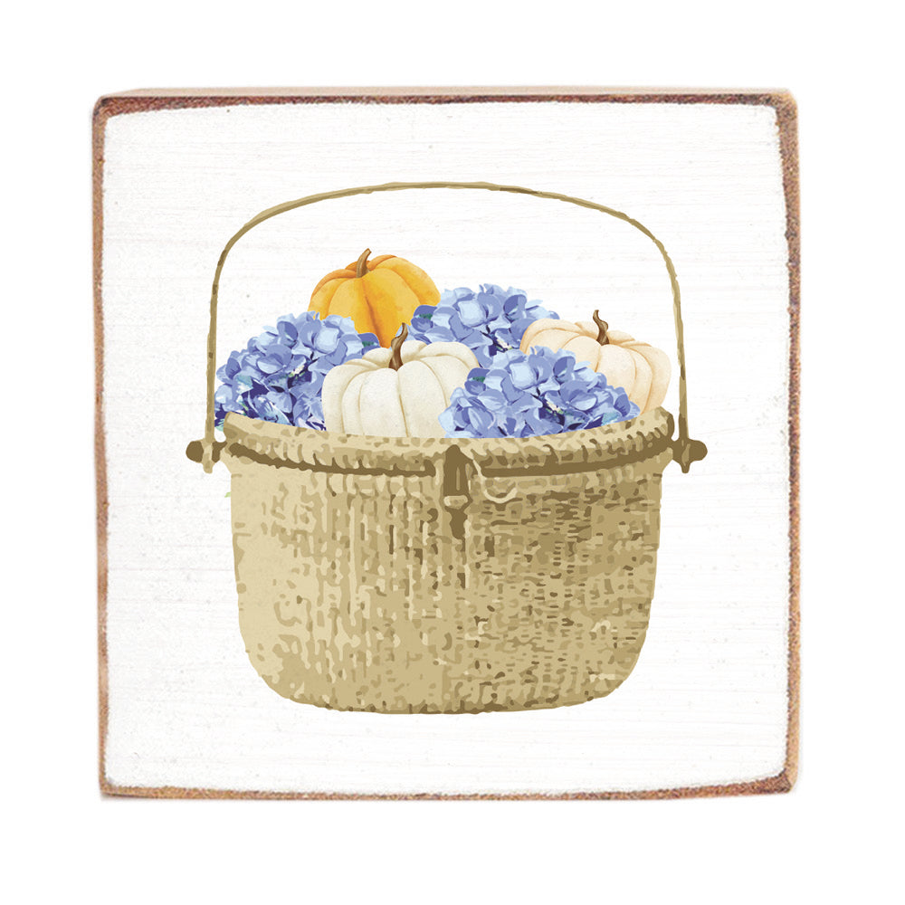 Enhance your seasonal decor with this charming Fall Hydrangea Basket Square Block Sign, perfect for adding a touch of autumn warmth to any room. This twine sign effortlessly brings the beauty of fall indoors, featuring a delightful basket filled with vibrant blue hydrangeas and mini pumpkins. Ideal for creating a cozy atmosphere, it complements a variety of home styles, from farmhouse to modern.