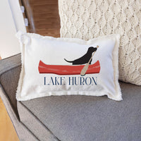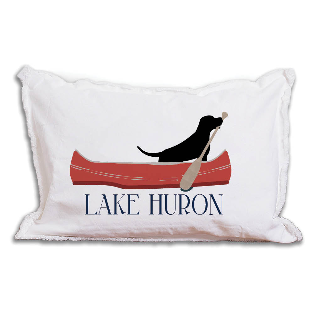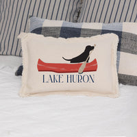 Crafted with high-quality materials, this lumbar pillow features a delightful black lab paddling a canoe, set against a serene backdrop. The durable fabric ensures long-lasting use, while the soft filling provides excellent support. Pair it with a twine sign or other home decor to create a cohesive look. Ideal for cabins, lake houses, or any space that celebrates nature and pets.