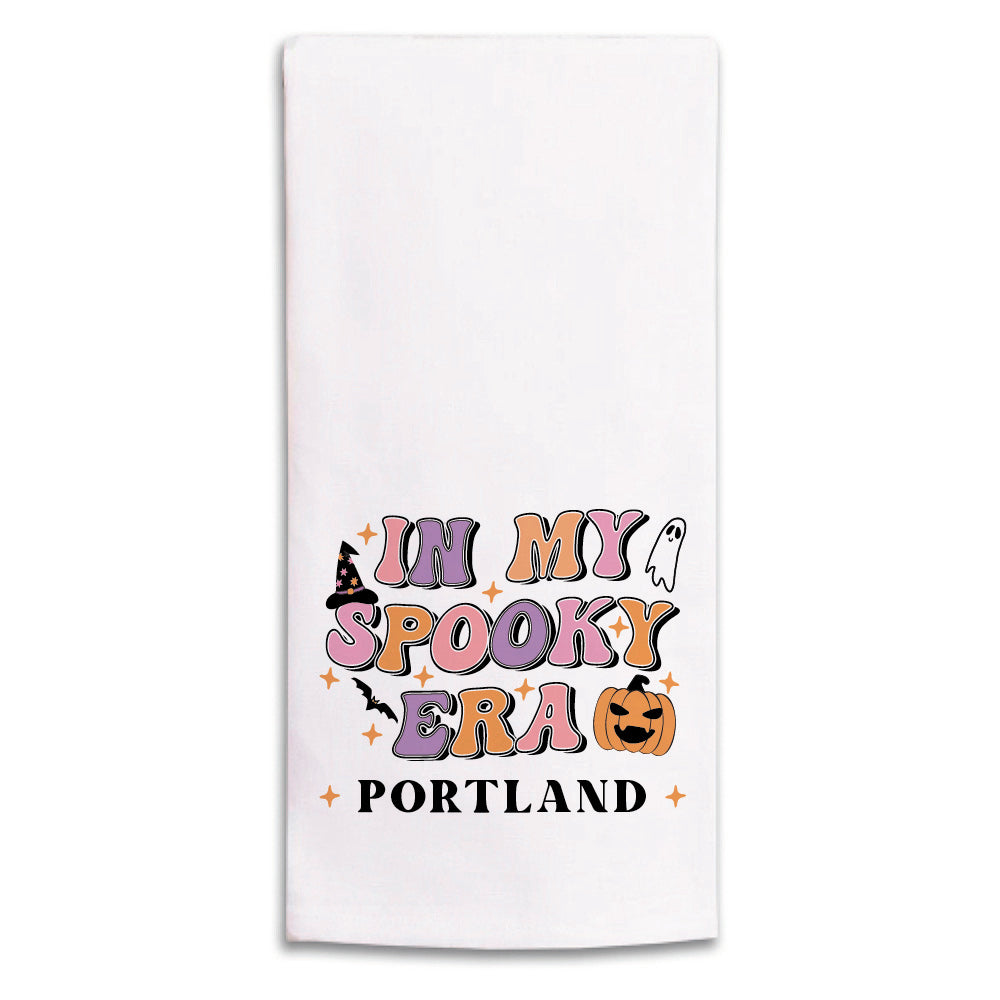 Elevate your Halloween decor with the "In My Spooky Era" personalized tea towel, perfect for adding a touch of festive charm to your kitchen. This unique towel not only serves as a functional kitchen accessory but also as a delightful conversation starter. Personalize it with your city or name to make it truly yours, and enjoy the seasonal spirit it brings to your home. Whether you're hosting a Halloween gathering or simply enjoying a cozy night in, this towel adds a playful and personalized touch to your space.